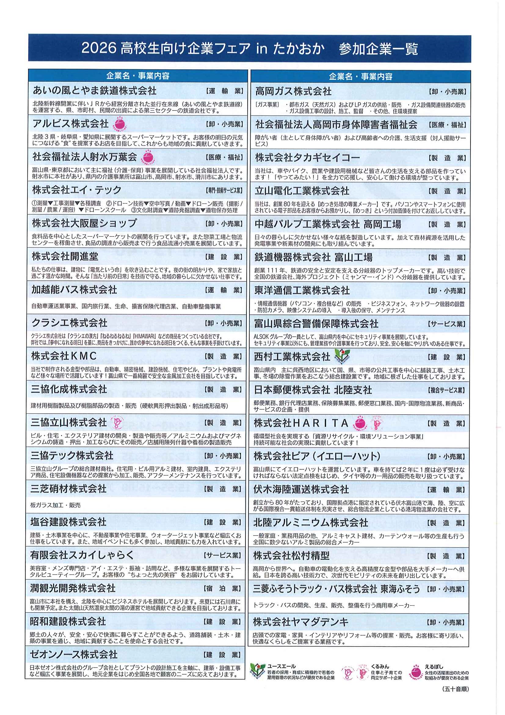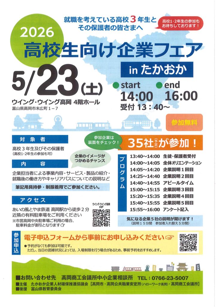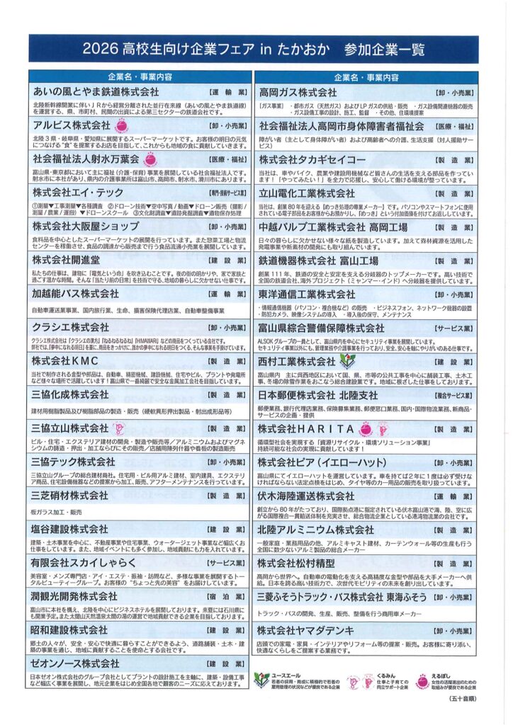 2026高校生向け企業フェアinたかおか に参加します(^^)/