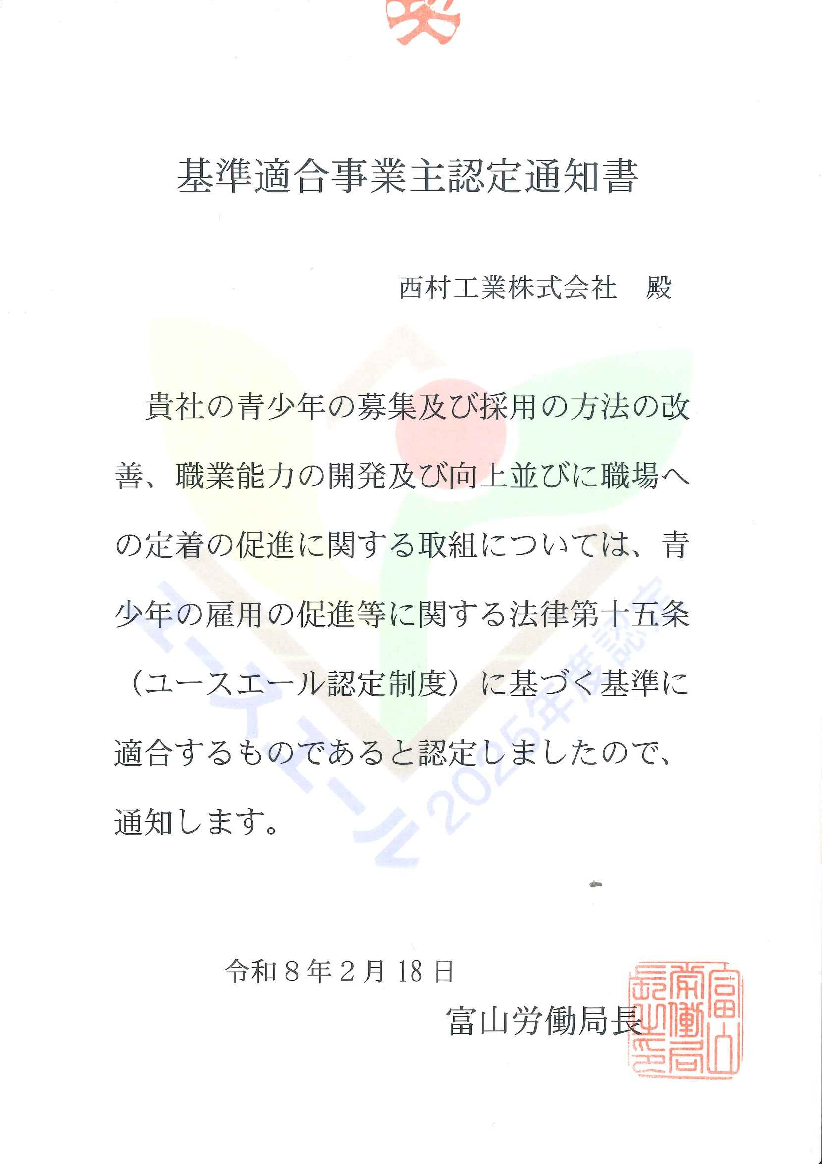 外部での表彰受賞者や永年勤続で他の模範となる社員は、社内の全体会議時や高岡商工会議所における合同優良社員表彰で賞状、賞品または賞金などを授与し表彰しています。